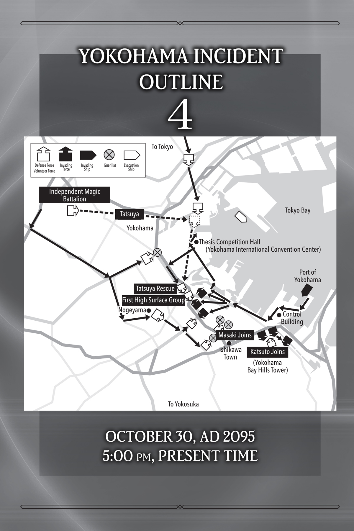 Sementara itu, saat Miyuki menangkap Xiangshan Chen, Tatsuya mendekati tenggorokan musuh dengan tim Yanagi.