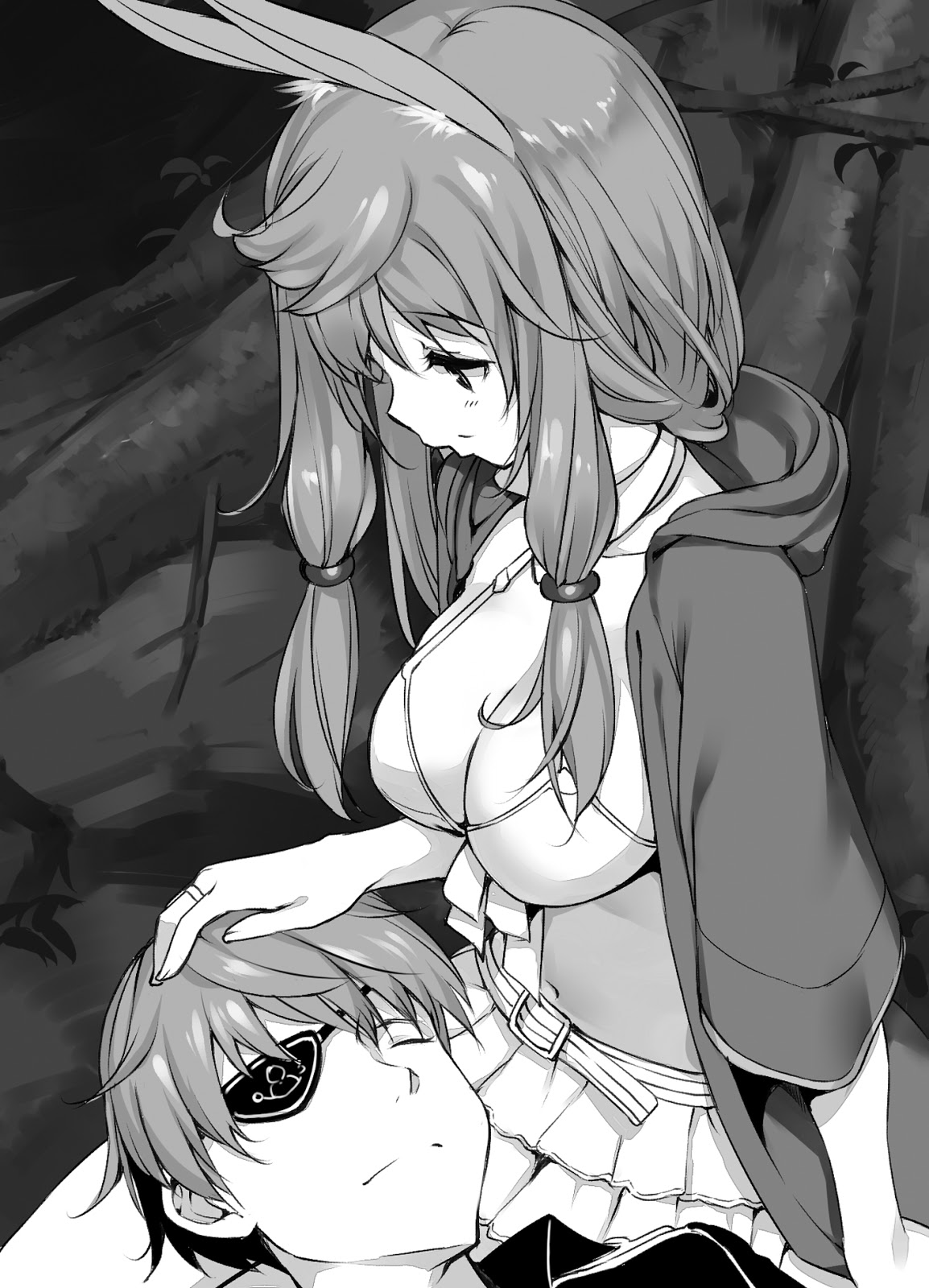Jadi berhentilah membuang waktu kamu mencoba bernegosiasi. Yue meringkuk ke Hajime, sementara Shea masih kaget karena fakta bahwa Hajime telah memeluknya sekencang dia memeluk Yue. Sedetik kemudian, telinga dan ekornya mulai bergerak-gerak gembira, dan dia balas memeluk Hajime. Matanya bertemu dengan mata Yue dan keduanya terkikik bahagia satu sama lain.