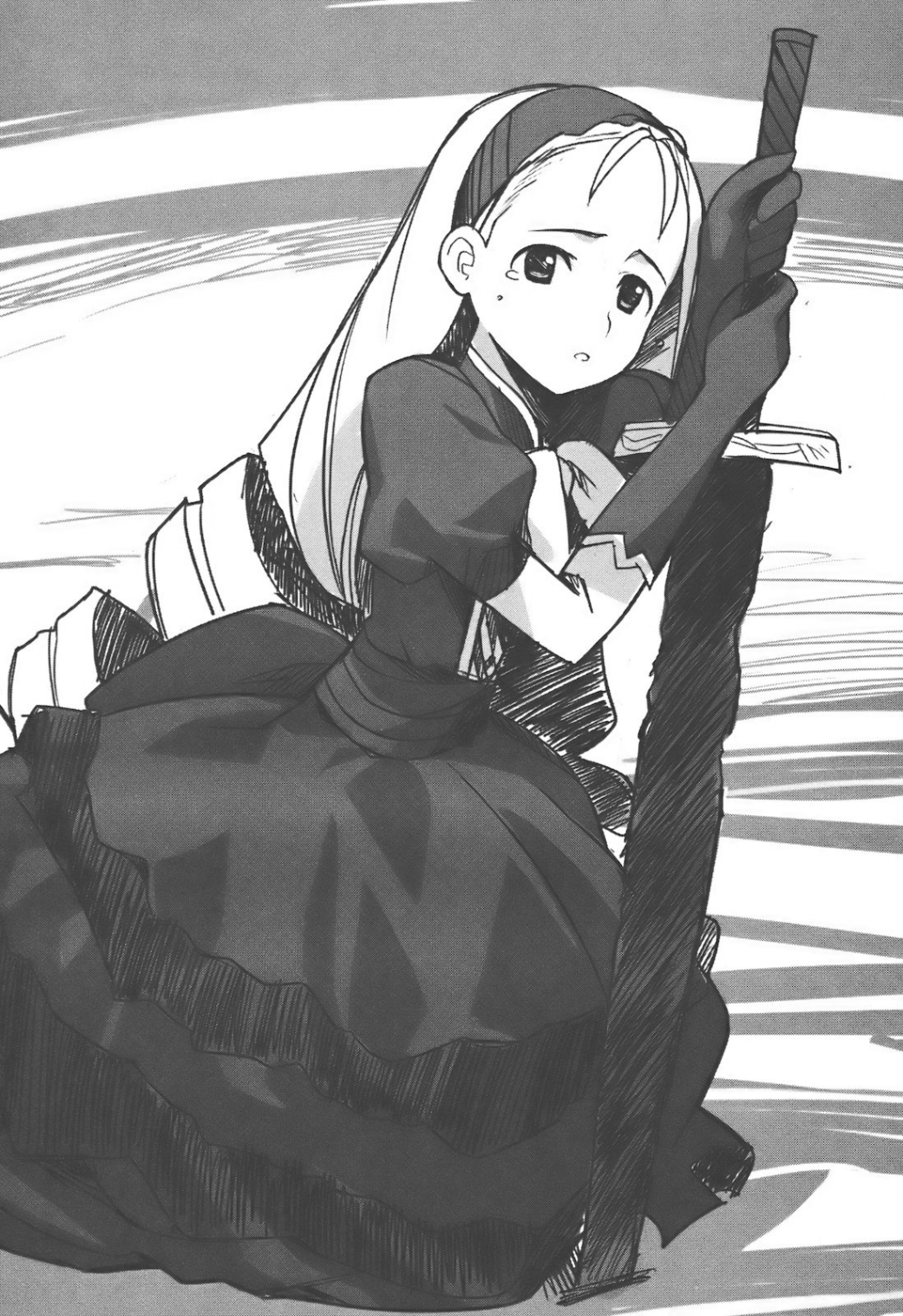 Rambut pendeknya berwarna perak seolah disirami cahaya rembulan. Pupil matanya hitam pekat seperti kegelapan yang pekat. Keindahan wajahnya yang indah tampak seperti anak kecil namun sakral, dan lebih jauh lagi, memancarkan keramahtamahan seorang ratu. Seluruh tubuhnya yang telanjang dipenuhi dengan kekuatan yang tidak bisa dimiliki gadis manusia.