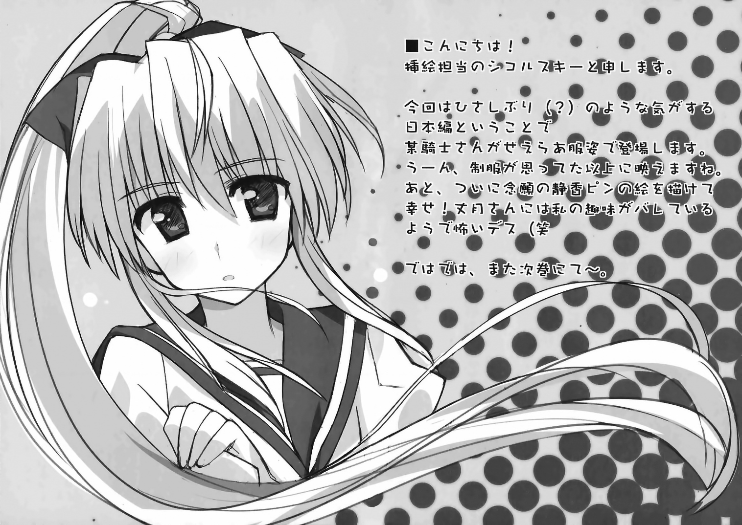 “Mungkin, trik yang menghasilkan Hime-Miko baru terletak pada garis keturunan mereka. aku percaya Komite selalu melacak keluarga-keluarga yang dengan mudah menghasilkan orang-orang dengan kekuatan spiritual yang luar biasa; Komite juga mengamati dan melindungi mereka sehingga garis keturunan mereka tidak mati selama proses itu, orang-orang dengan kekuatan spiritual yang lebih besar dipilih sebagai Hime-Miko … sesuatu seperti itu. ”
