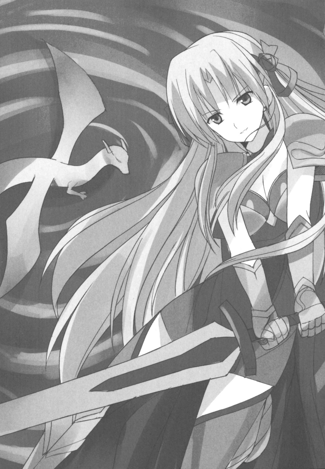 Naga air putih yang telah menyiksa Erica menyadari serangan ini dan menyihir sihir pertahanan. Pola cahaya putih muncul di depan naga air, menghalangi panah biru. Ama no Murakumo no Tsurugi juga dibelokkan dengan sapuan ekor naga.
