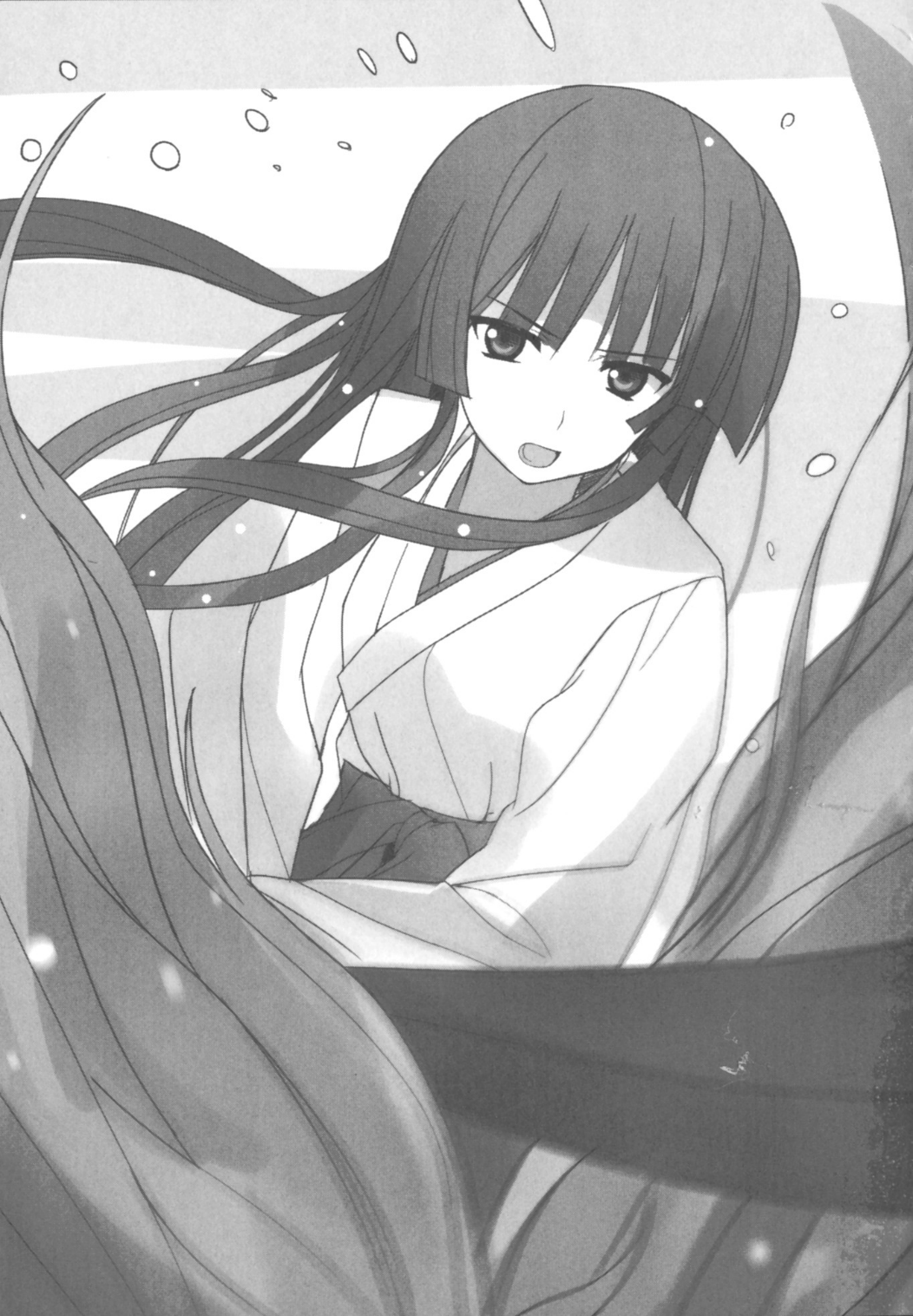 Gaun putih ketat yang dipadukan dengan hakama longgar. Seandainya rambut dibagi menjadi dua bagian kiri dan kanan dan diikat di dekat telinga, penampilannya akan sangat menyerupai Yamato Takeru.