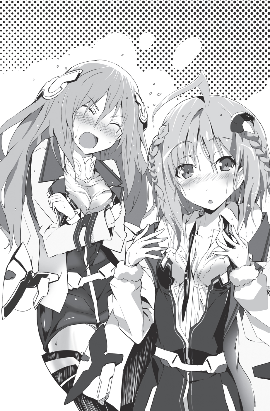 “Aku tidak yakin apa yang terjadi, tapi … Augh! “Ayato sedang melihat sekeliling, bingung, ketika wajahnya tiba-tiba menjadi merah dan dia menatap dengan canggung ke samping.