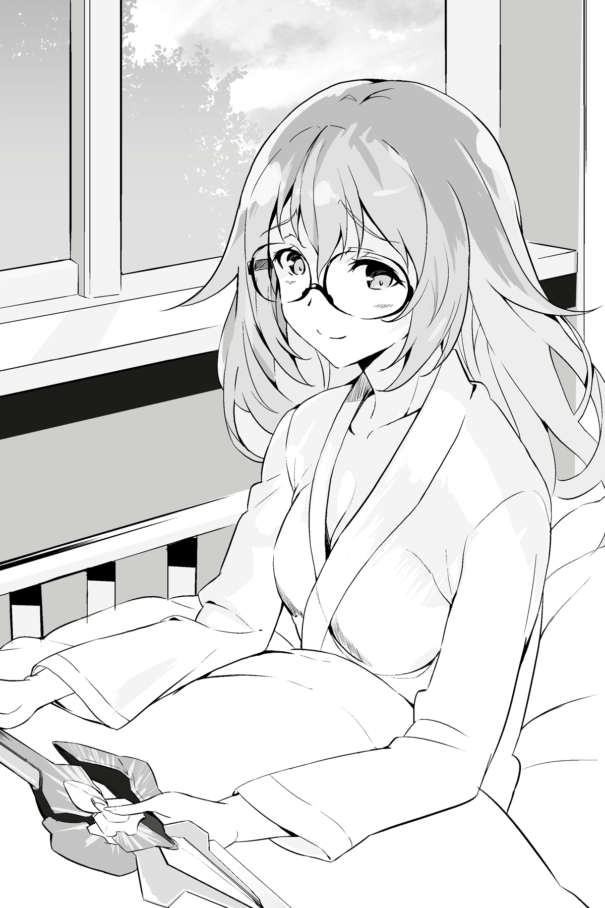 Haruka, mengenakan gaun rumah sakit biru pucat, benar-benar tidak berubah sama sekali dari bagaimana dia mengingatnya.