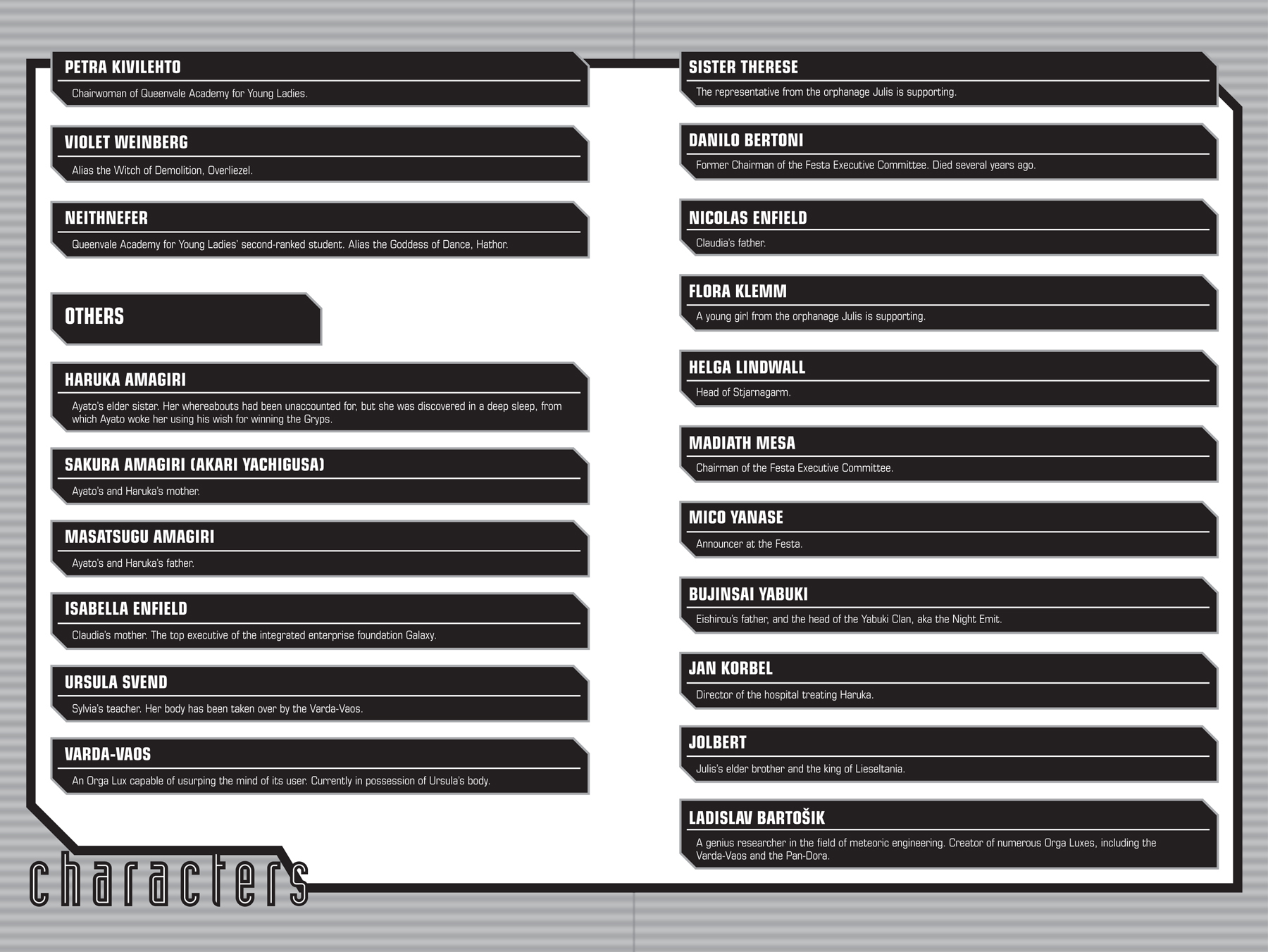 Kami akan lebih fokus pada pertarungan melawan Golden Bough Alliance mulai sekarang juga. Cerita secara keseluruhan akan menjadi lebih intens mulai sekarang, dan Julis khususnya memiliki nasib kejam yang menantinya, tapi tolong terus membaca! Kirin adalah satu-satunya dari kamianggota utama yang tidak muncul kali ini, tapi aku punya rencana besar untuknya di jilid berikutnya. aku harap kamu semua menantikannya seperti aku!