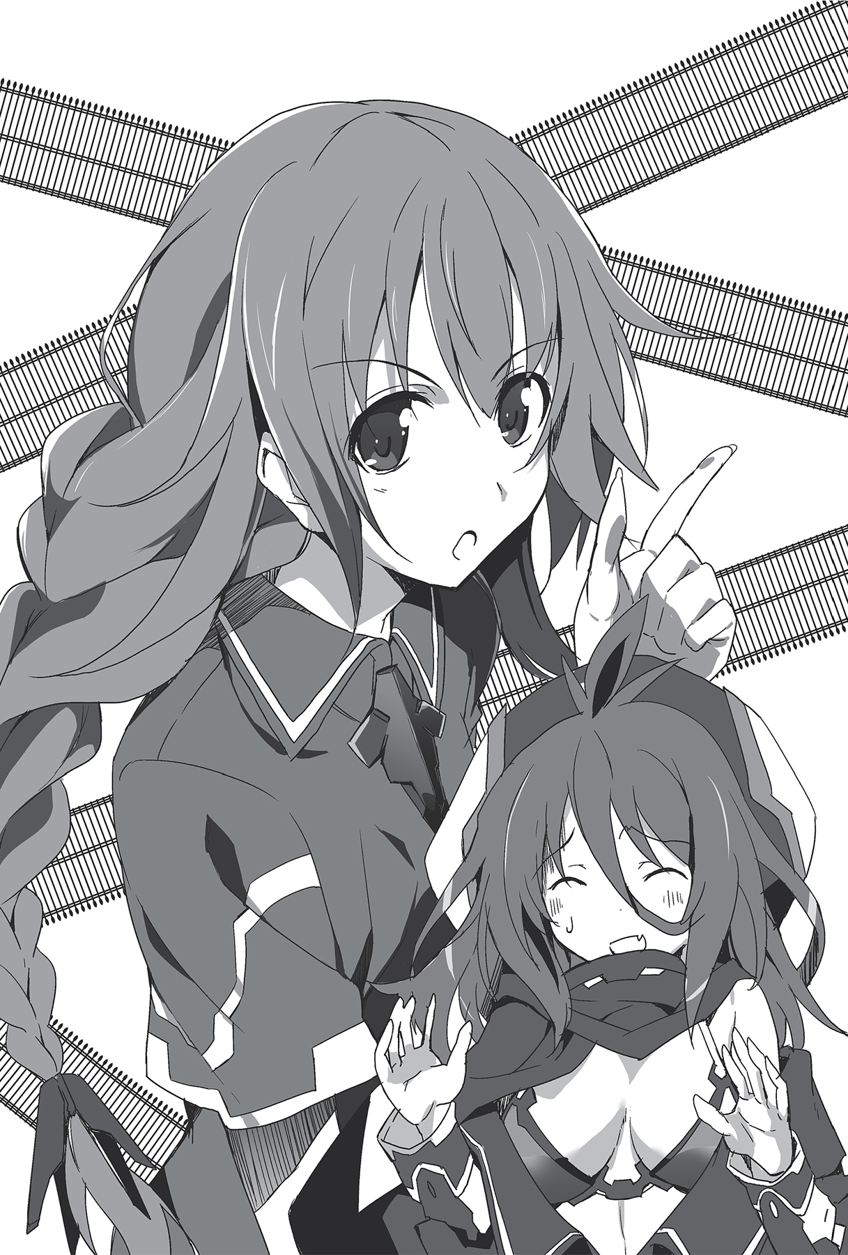 Di ruang untuk lawan Julis dan Ayato, bersama dengan lambang sekolah Le Wolfe Black Institute, adalah nama Irene Urzaiz dan Priscilla Urzaiz .