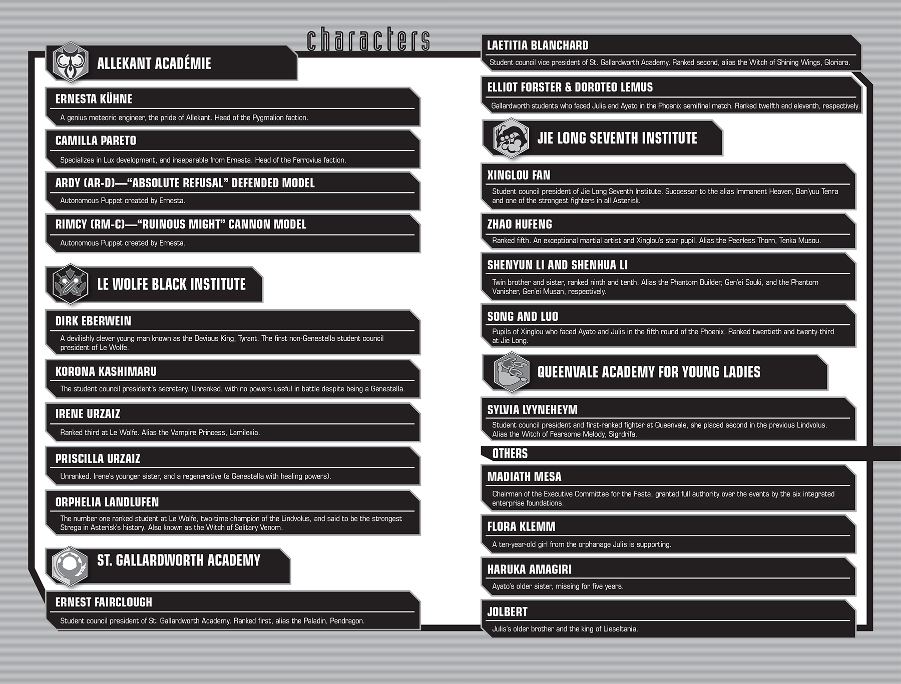 Volume ini terjadi di luar kota Asterisk. Kisah ini seharusnya terutama terjadi di Asterisk, sesuai judulnya, tapi aku pikir akan lebih baik untuk menggambarkan latar belakang Julis sedikit lebih (Julis adalah salah satu pahlawan cerita, tetapi pada saat yang sama, dia juga salah satu dari mereka. dari protagonis).