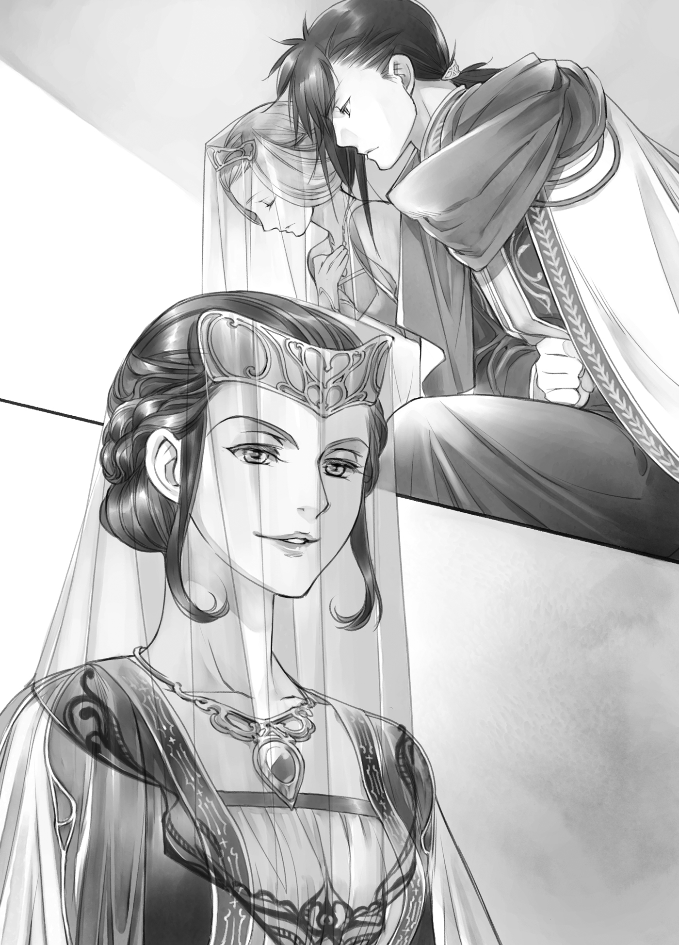 “Wanita dari Ahrensbach harus selalu memakai cadar saat menampilkan diri di depan umum. Kerudung diperkenalkan ke dalam mode Ehrenfest oleh nenek Lord Sylvester, yang menikah dengan kadipaten dari Ahrensbach. Saat itu, ada banyak bangsawan yang memakainya, ”kata Rihyarda dengan senyum nostalgia saat dia mengunci cadar di tempatnya menggunakan pin.
