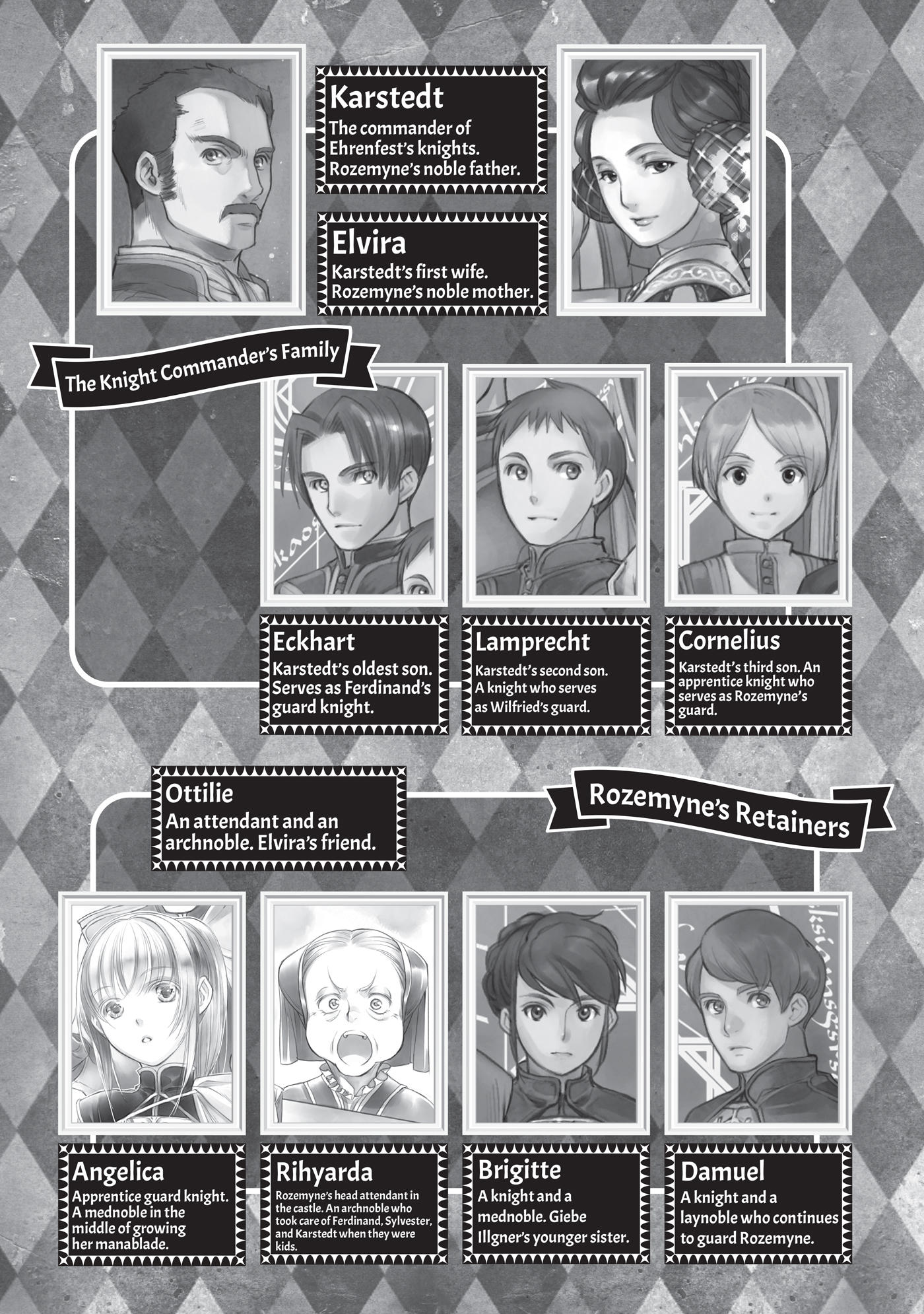 Di ruangan ini, dia bisa berbicara sebagai Myne daripada Rozemyne, putri angkat sang archduke, dan semua pengikut yang diizinkan mengikutinya ke dalam adalah mereka yang mengenalnya sejak hari-hari biasa. Karena itu, Benno umumnya hanya pernah membawa Mark dan Lutz ke kuil. Damian secara teknis mengenalnya sejak dia adalah orang biasa juga, tetapi tampaknya dia tidak terlalu menyukainya, jadi Benno menghindari membawanya ketika dia bisa.
