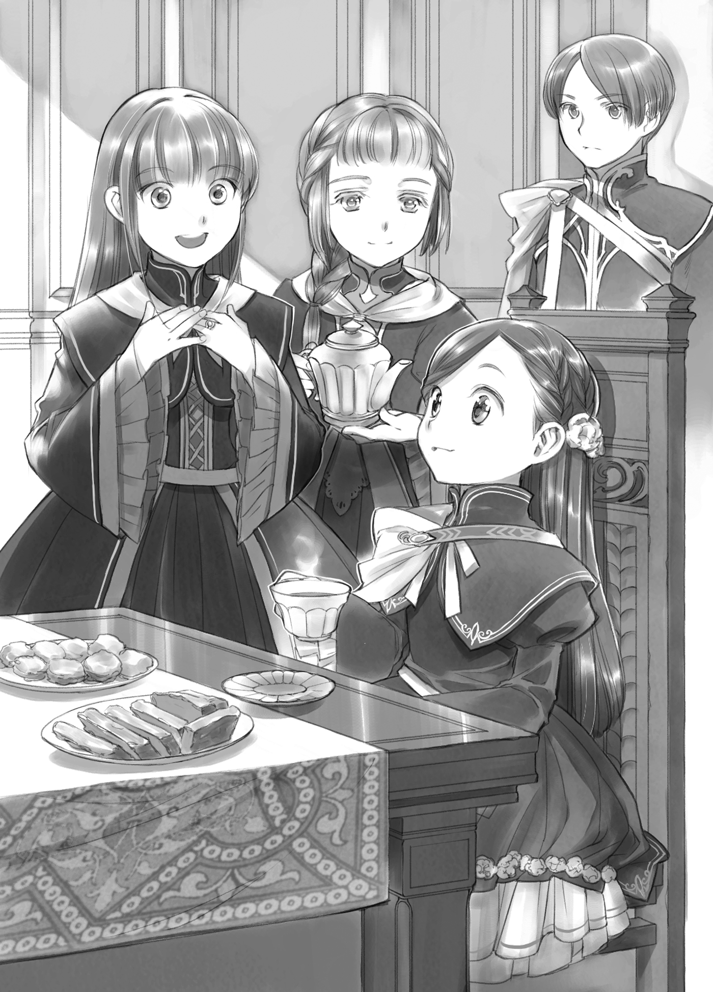 “Nona Rozemyne telah tiba,” para ksatria penjagaku mengumumkan, mendorong beberapa pegawai magang kakak kelas untuk mulai menyiapkan teh dan menyajikan permen untukku. Ketika aku melihat sekeliling, aku melihat beberapa siswa baru lainnya di tahun aku dengan gugup menyeruput teh mereka sendiri.