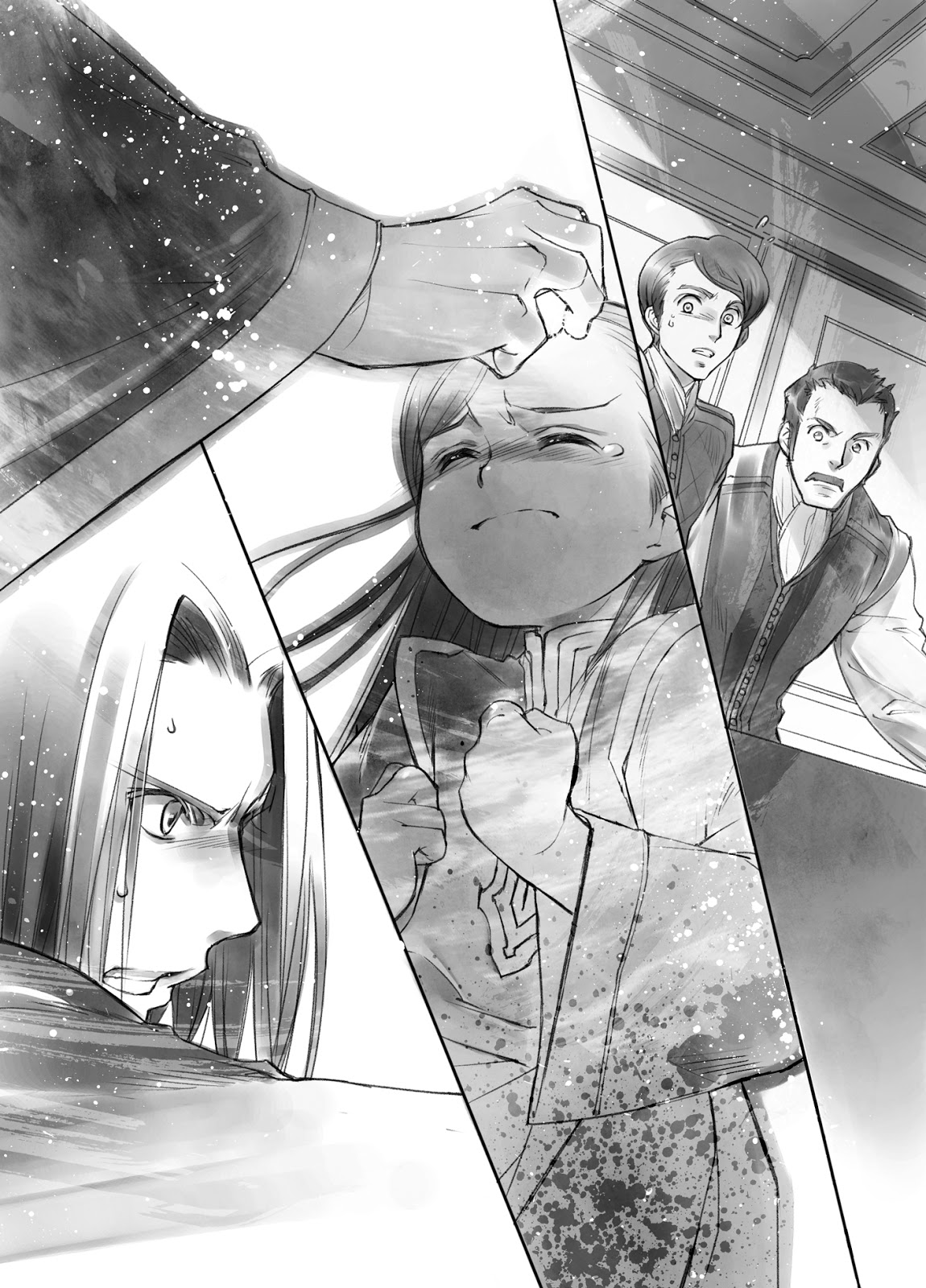 “Myne!” High Priest, suaranya meninggi karena panik, meraih lenganku dan menarikku ke arahnya. Aku jatuh ke pelukannya, dan segera diselimuti lengan panjangnya yang terkulai.
