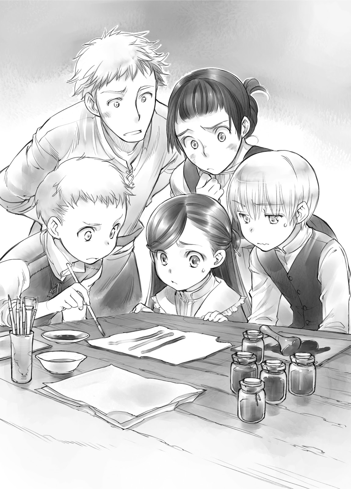 Tetapi Rosina kurang bersimpati pada nasib burukku dan lebih terkejut karena aku tidak tahu tentang memperbaiki agen. “Oh, kamu tidak tahu tentang memperbaiki agen, Sister Myne?” dia bertanya, matanya membelalak. “Mereka sangat penting untuk menggambar. Tanpa mereka, sungguh tidak ada seni berwarna yang bisa dilakukan sama sekali. ”