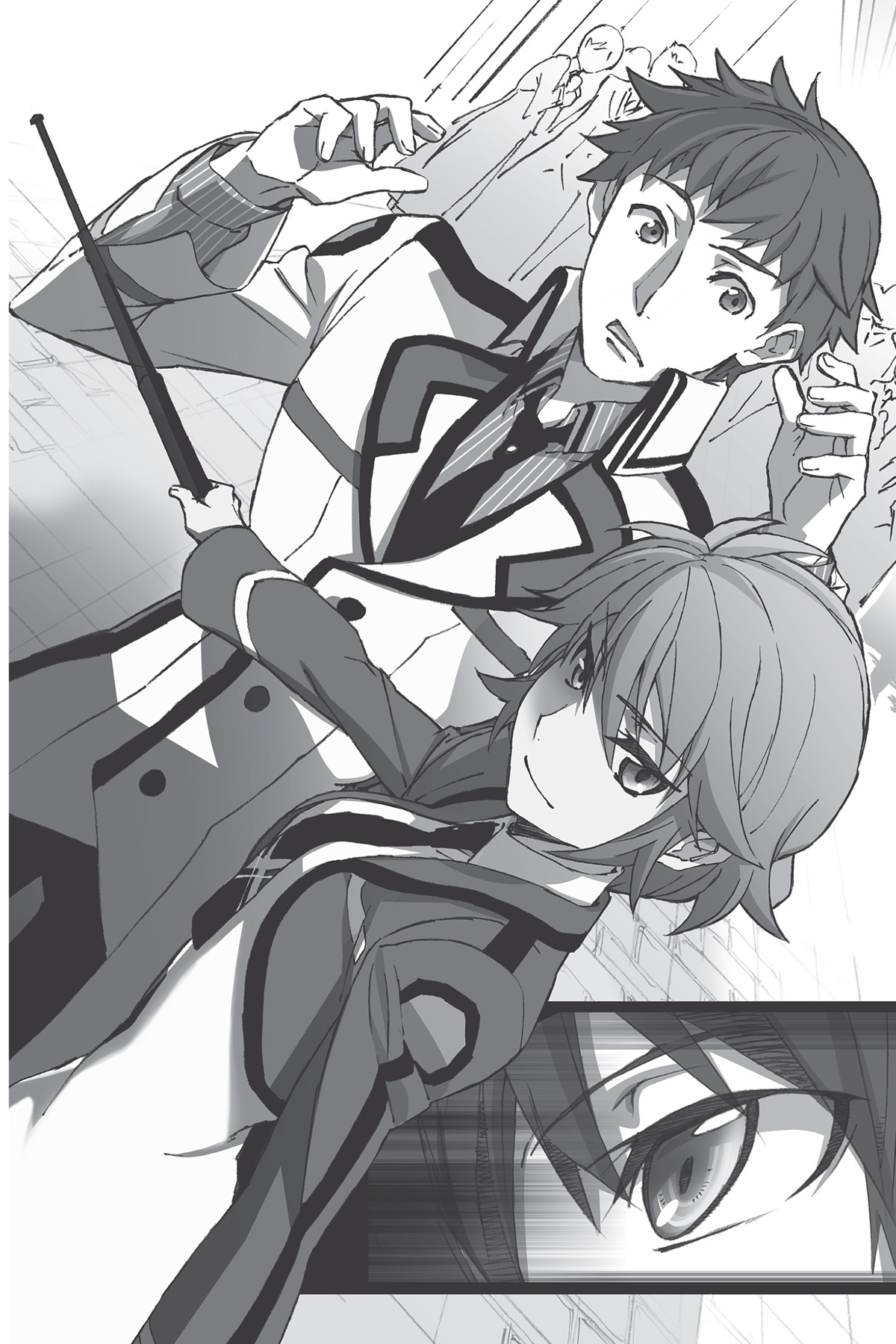Gadis dari 1-A yang akan memperburuk situasi menghalangi mereka, tapi dia sejujurnya tidak ingin terlibat lagi dengannya hari ini. Dia bertukar pandangan dengan Miyuki dan pergi melewatinya. Miyuki, mencoba menebak perasaan Tatsuya, hendak mengatakan Sampai jumpa besok ketika gadis itu membuka mulutnya dulu.