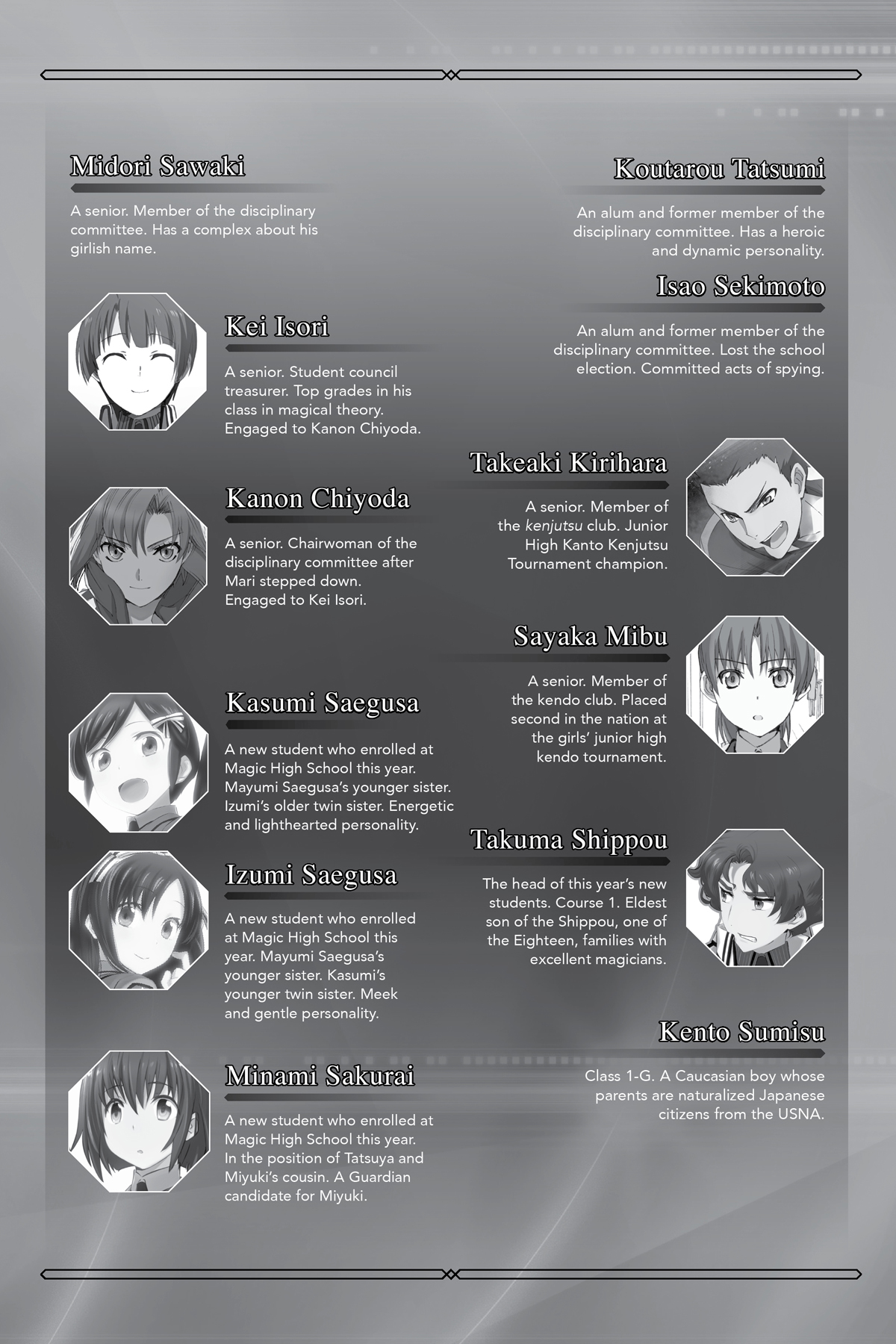 Wahyu ini tidak datang dari Mikihiko tetapi dari Shizuku. Tapi itu dengan sendirinya memberi Tatsuya jawaban: Mereka berdua adalah anggota komite disiplin. Dengan kata lain, mereka telah menguping dari markas mereka.
