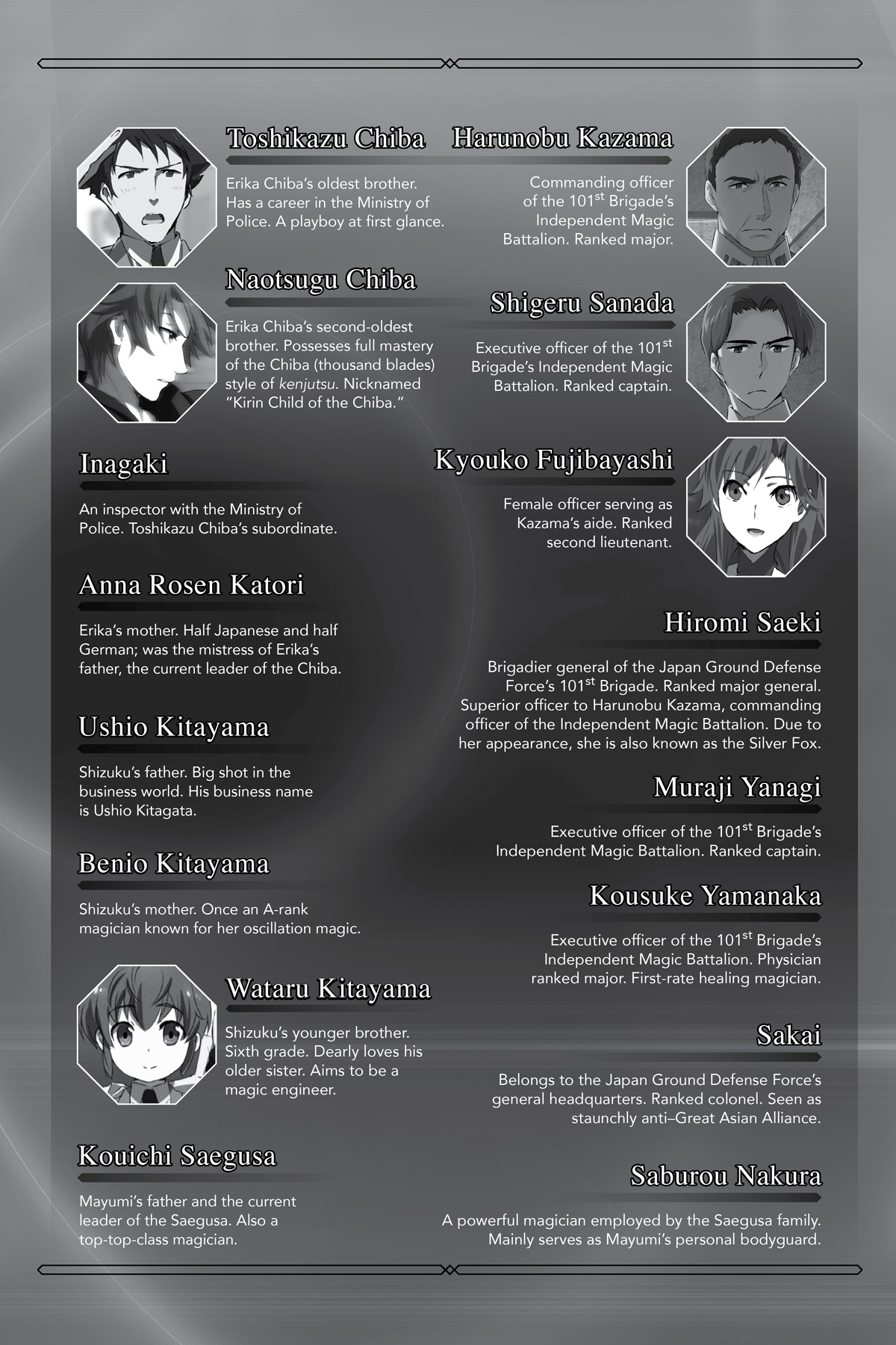 Mata Miyuki membelalak. Bagian terakhir dari ucapan kakaknya tampaknya cukup mengejutkan. Manifestasi lain dari efek buruk berpikir Yotsuba terlalu istimewa, tapi Tatsuya tidak terlalu merasa perlu untuk menegurnya tentang hal itu. Untuk saat ini, dia ingin dia berhati-hati hanya tentang Yotsuba. Selama Tatsuya tidak mengabaikan kewaspadaannya sendiri terhadap Sepuluh Master Clan dan kelompok penyihir lainnya, dia akan baik-baik saja.