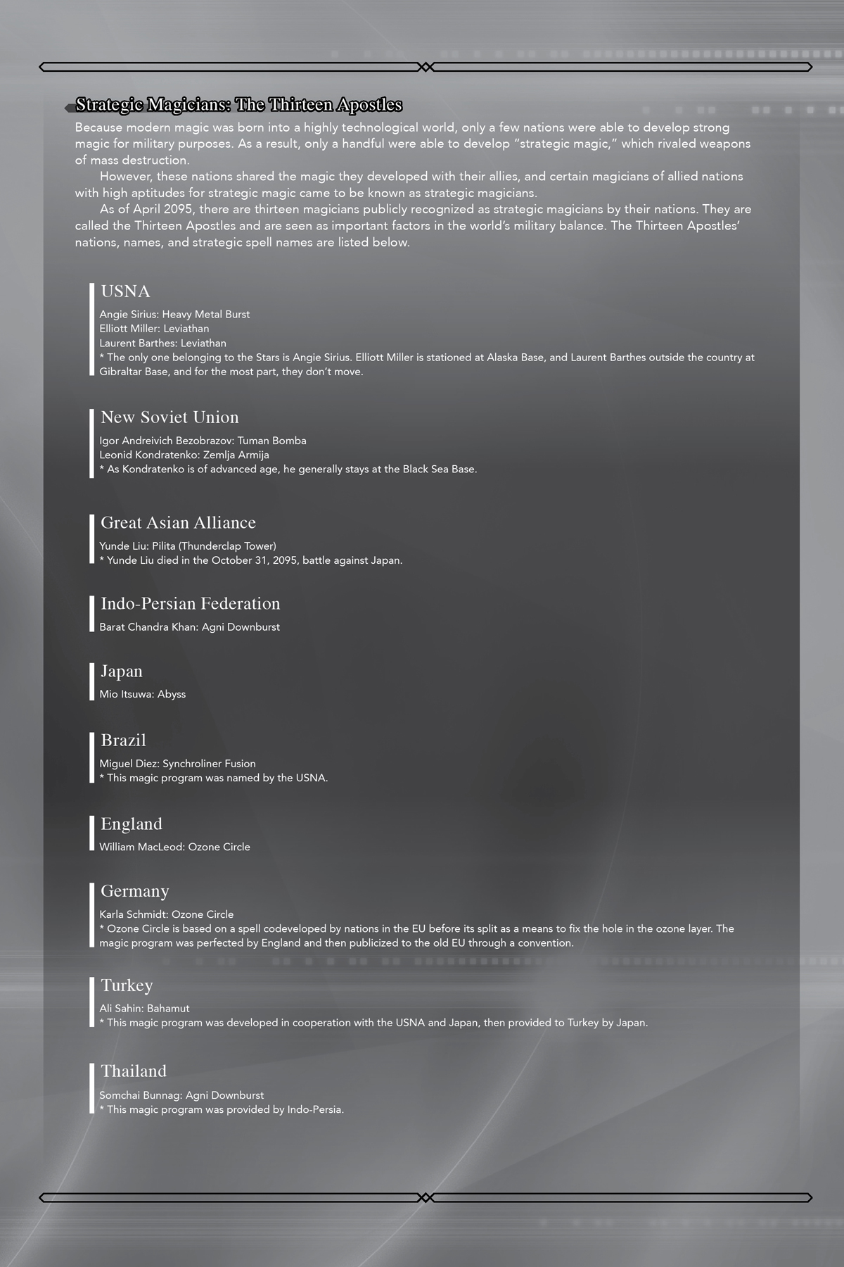 Penelitian dan pengembangan sihir modern dapat melacak asal-usulnya ke insiden 1999 ketika seorang perwira polisi Amerika menghentikan serangan teroris nuklir menggunakan kemampuan aneh, sesuatu yang masih disebut kekuatan psikis pada saat itu. Oleh karena itu, tujuan utama R&D sihir modern di masa-masa awalnya adalah untuk mengejar metode untuk memerangi ancaman nuklir — khususnya menghentikan dan mengendalikan fisi nuklir serta memblokir dan menetralkan radiasi.