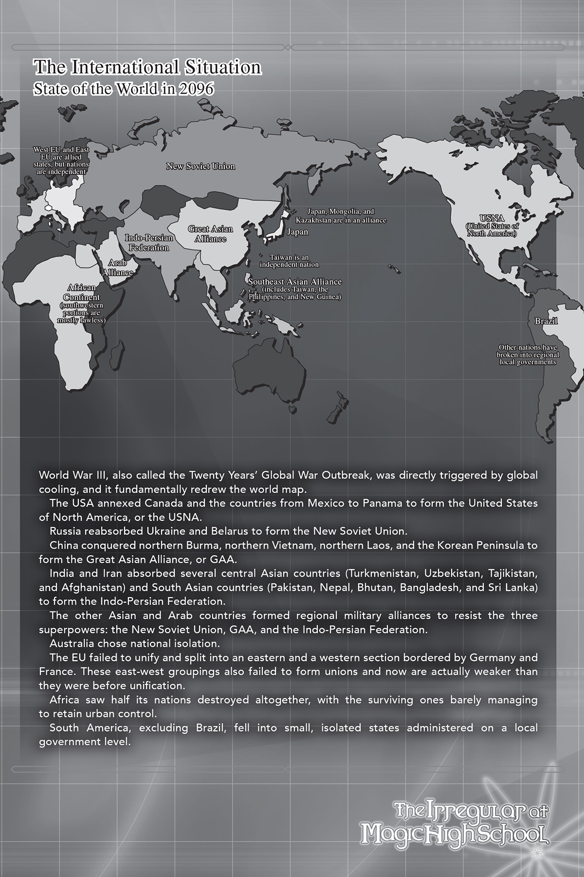 Saat ini, Tatsuya berada di tingkat terendah dari fasilitas pelatihan bawah tanah Kuil Sembilan. Dinding, lantai, dan langit-langit dibangun dalam tiga lapisan; mulai dari dalam, ada lapisan beton setebal sepuluh sentimeter, kemudian lapisan timah setebal tiga puluh sentimeter, dan terakhir lapisan beton penyekat neutron setebal enam puluh sentimeter.