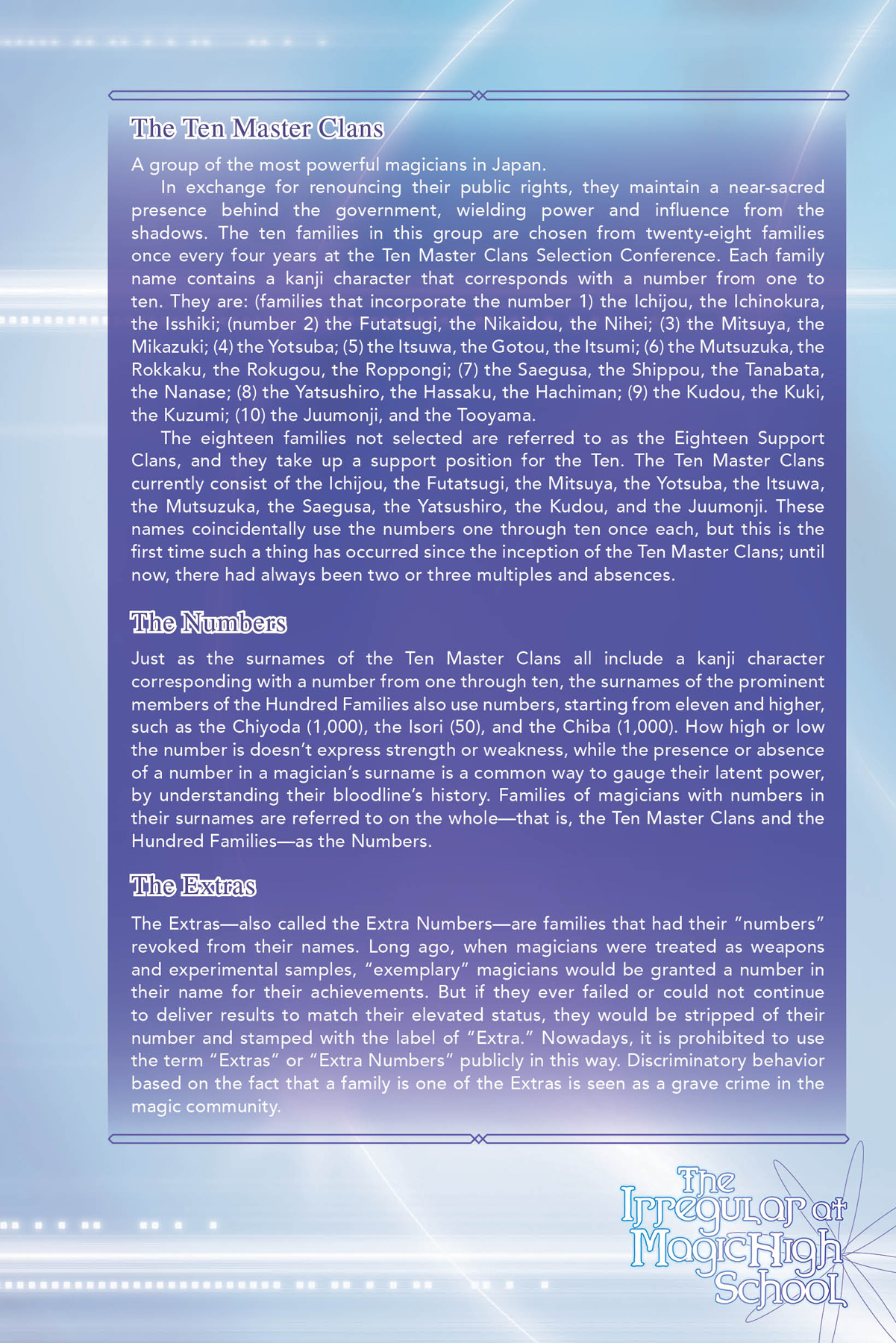 Kenyataannya, bagaimanapun, adalah bahwa sumber daya manusia negara ini dibatasi hingga batasnya hanya dengan mengelola sembilan sekolah menengah sihir ini. Oleh karena itu, tidak ada pilihan lain selain melatih dua belas ratus siswa SMA sihir ini sebanyak mungkin dan meningkatkan standar kemampuan mereka untuk memenuhi kebutuhan tenaga kerja yang penting dan berharga bagi para penyihir terlatih. Dengan metode ini, bangsa mengharapkan umpan balik positif untuk mengatasi kekurangan guru, yang pada gilirannya dapat meningkatkan jumlah Penyihir yang lebih banyak.