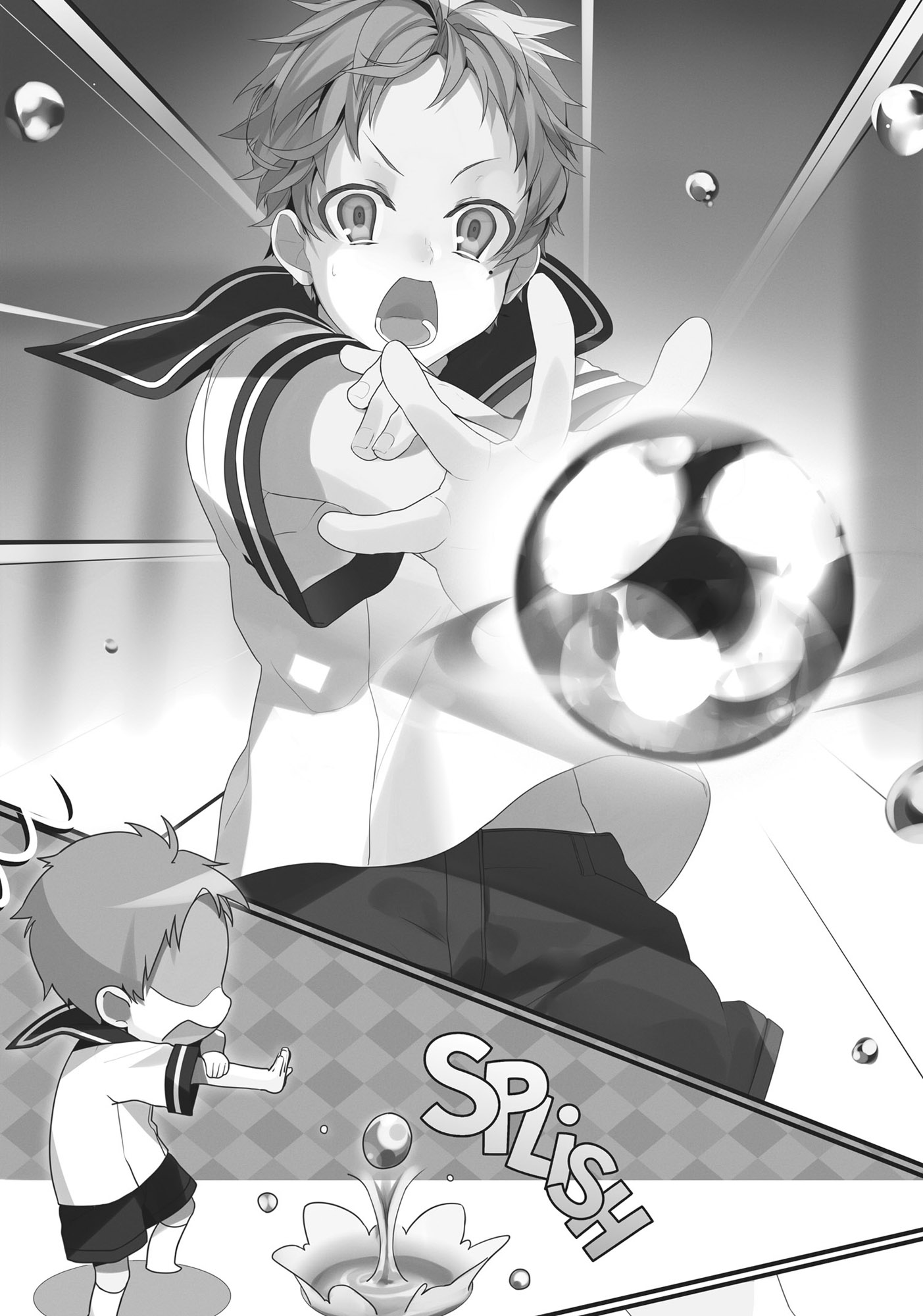 Saya memutuskan untuk mencobanya. “Hah?” Aku bergumam saat bola airku membesar. Wah! Dan kemudian: Splash!