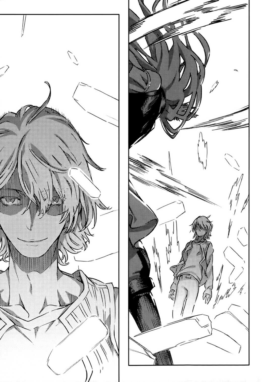 Dua Orang Suci. Monster-monster itu bisa bergerak dengan kecepatan supersonik dan menyerang dari dua arah sekaligus. Dan kali ini tidak ada “titik buta tak terlihat” yang bisa dia eksploitasi seperti yang dilakukannya pada Kanzaki Kaori. Berkelahi secara normal adalah satu-satunya pilihan dan bertarung secara normal tidak diragukan lagi akan menyebabkan kematiannya.