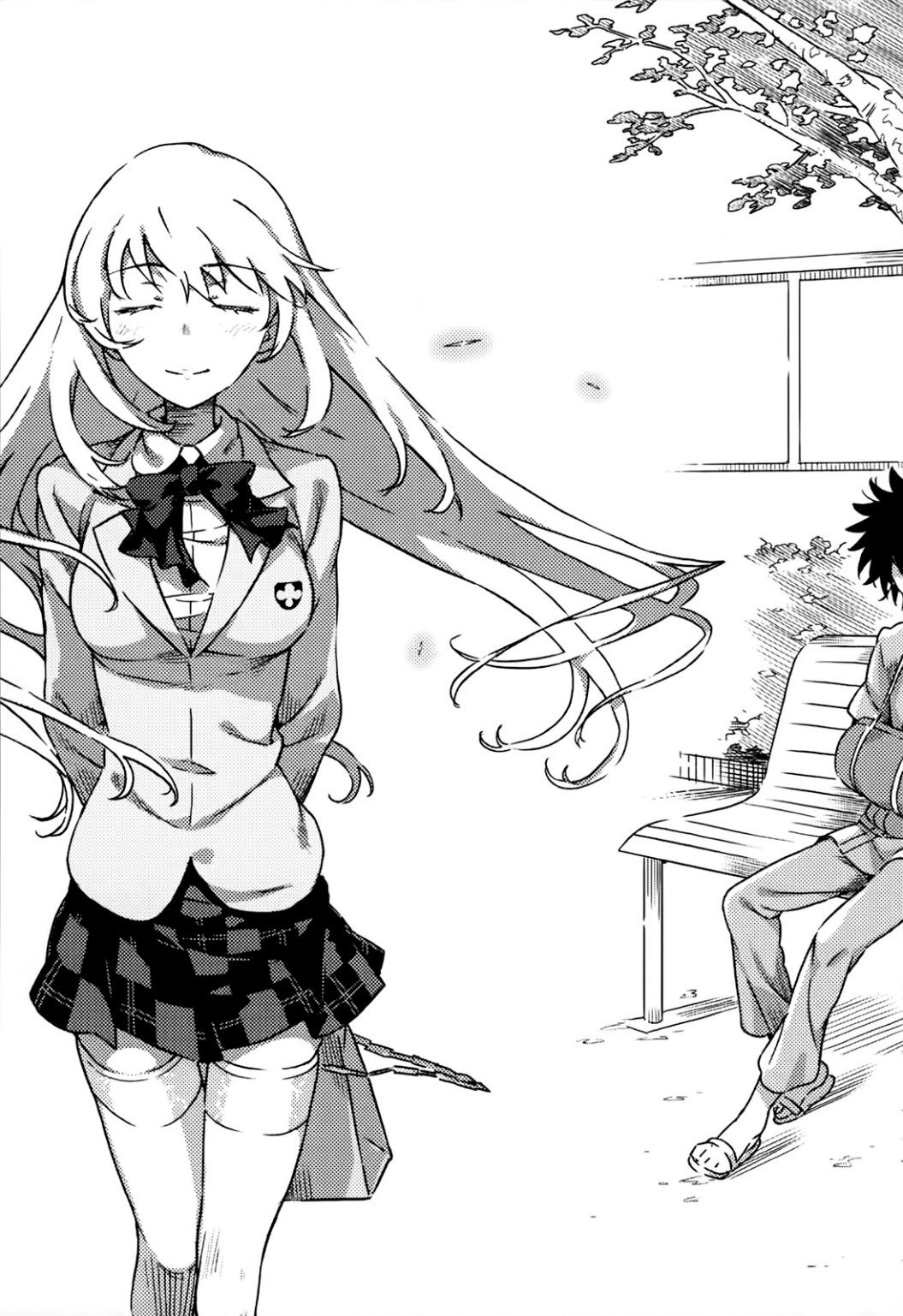 Kamijou mengerutkan kening ketika seorang gadis dengan rambut pirang-panjang sebatang madu berbicara kepadanya. Untuk satu hal, dia sangat dekat. Terlalu dekat. Dia ragu-ragu pindah saat mengajukan pertanyaan.