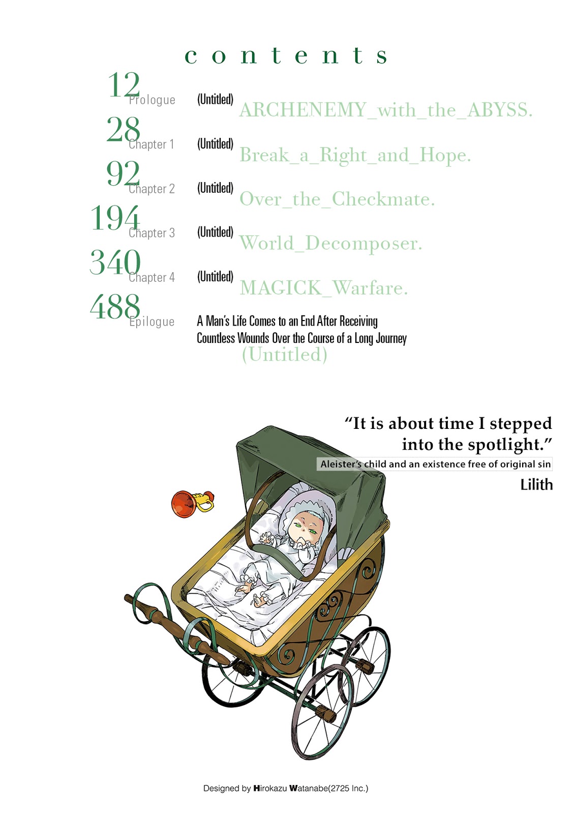 Dan dia tidak punya waktu untuk memeriksa klaim dengan hati-hati. Dia harus bertindak cepat untuk menyegel teknologi Academy City sehingga tidak bisa disalahgunakan oleh Demon Besar yang telah mengambil otoritas penuh ketua dewan. Tanpa mengandalkan Bank atau jaringan, Aleister terpaksa hanya mengandalkan ingatannya sendiri. Satu teori mengatakan bahwa Uskup Agung Anglikan adalah anak perempuan keduanya dan informasi lainnya menyatakan bahwa mereka sama sekali tidak terhubung seperti yang ia duga semula, tetapi bagaimana ia dapat membuat penilaian yang tepat mengingat keadaan !?