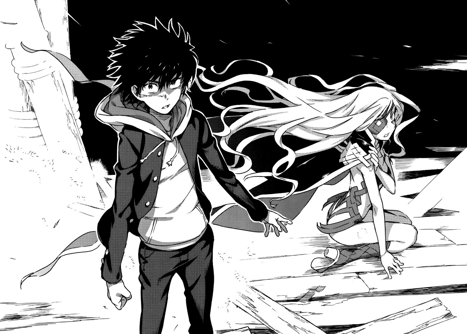 Untuk benar-benar kembali ke sana, Kamijou Touma mengumpulkan kekuatan di tangan kanannya dan diam-diam mengambil keputusan di depan seorang gadis yang babak belur.