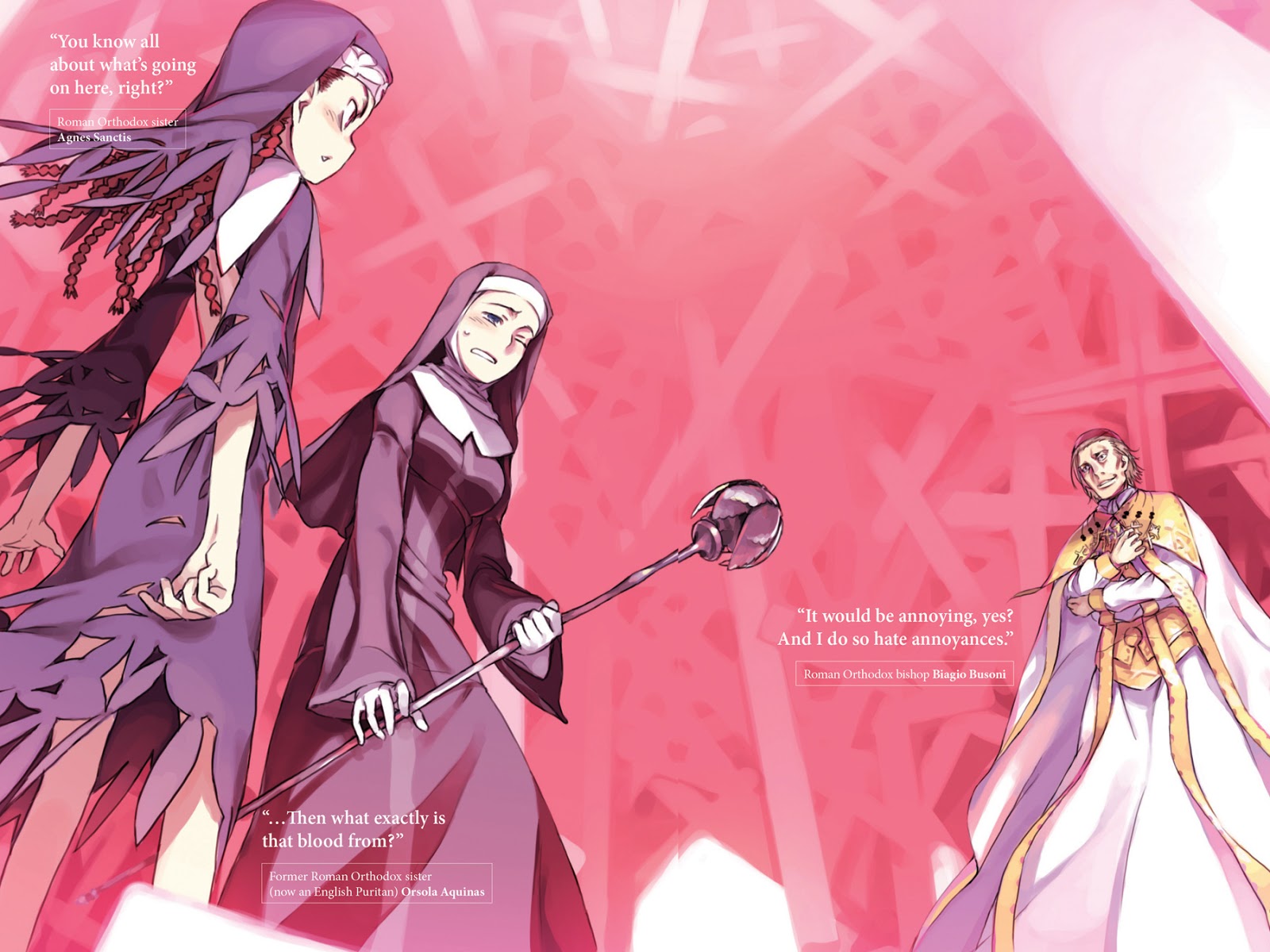 Plus, nama itu nyata: I NDEX L IBRORUM P ROHIBITORUM . Ketika Kamijou bergidik melihat betapa menakutkannya agama-agama negara, dia menguap, bosan. “Touma, Touma. aku tidak berpikir itu mungkin datang dengan efek Petugas Otomatis. ”