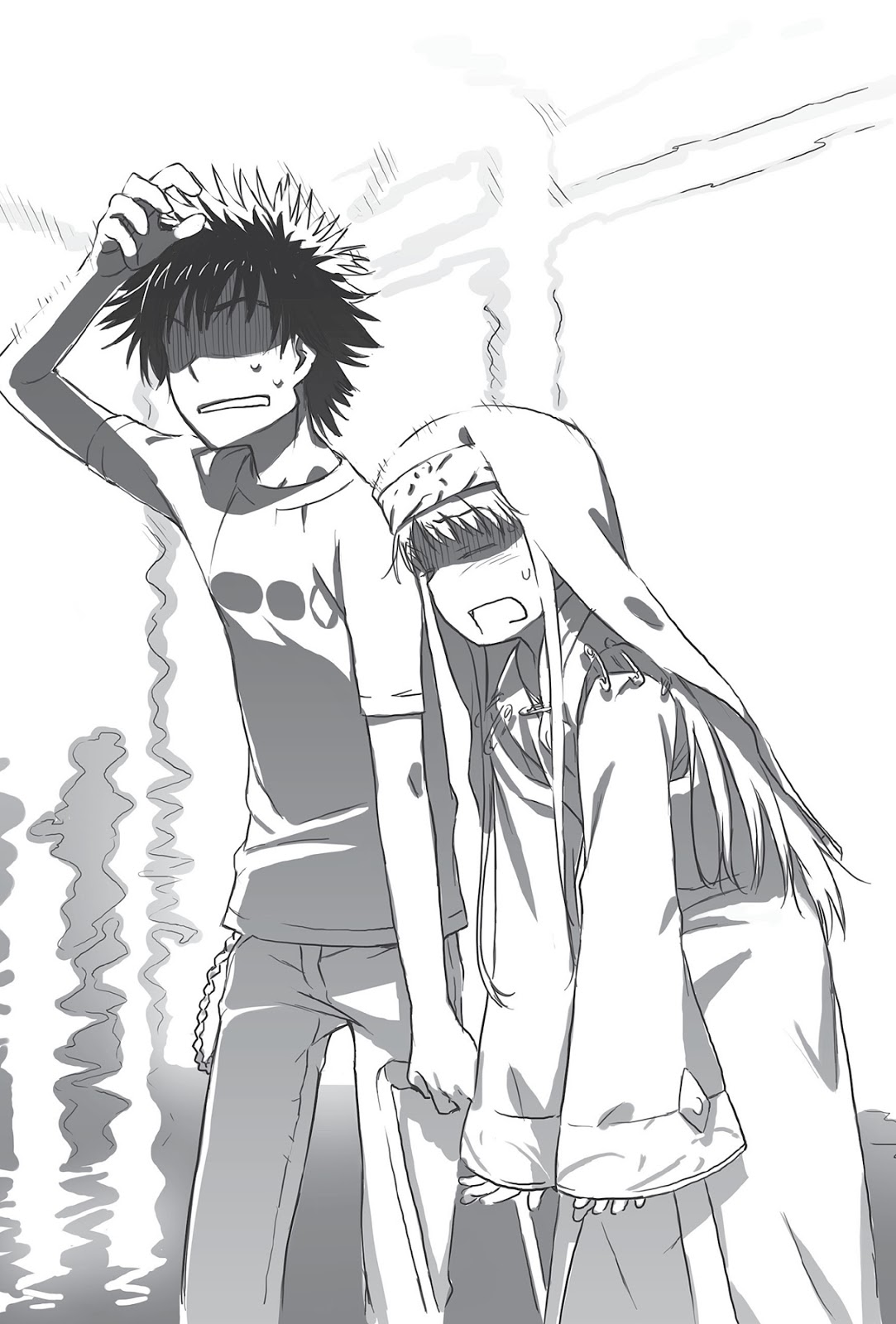 “Kita sudah dekat dengan air lagi, ya?” kata Kamijou pada dirinya sendiri begitu dia turun dari bus. Tangannya mencengkeram koper dengan cepat menjadi lelah saat dia menariknya.