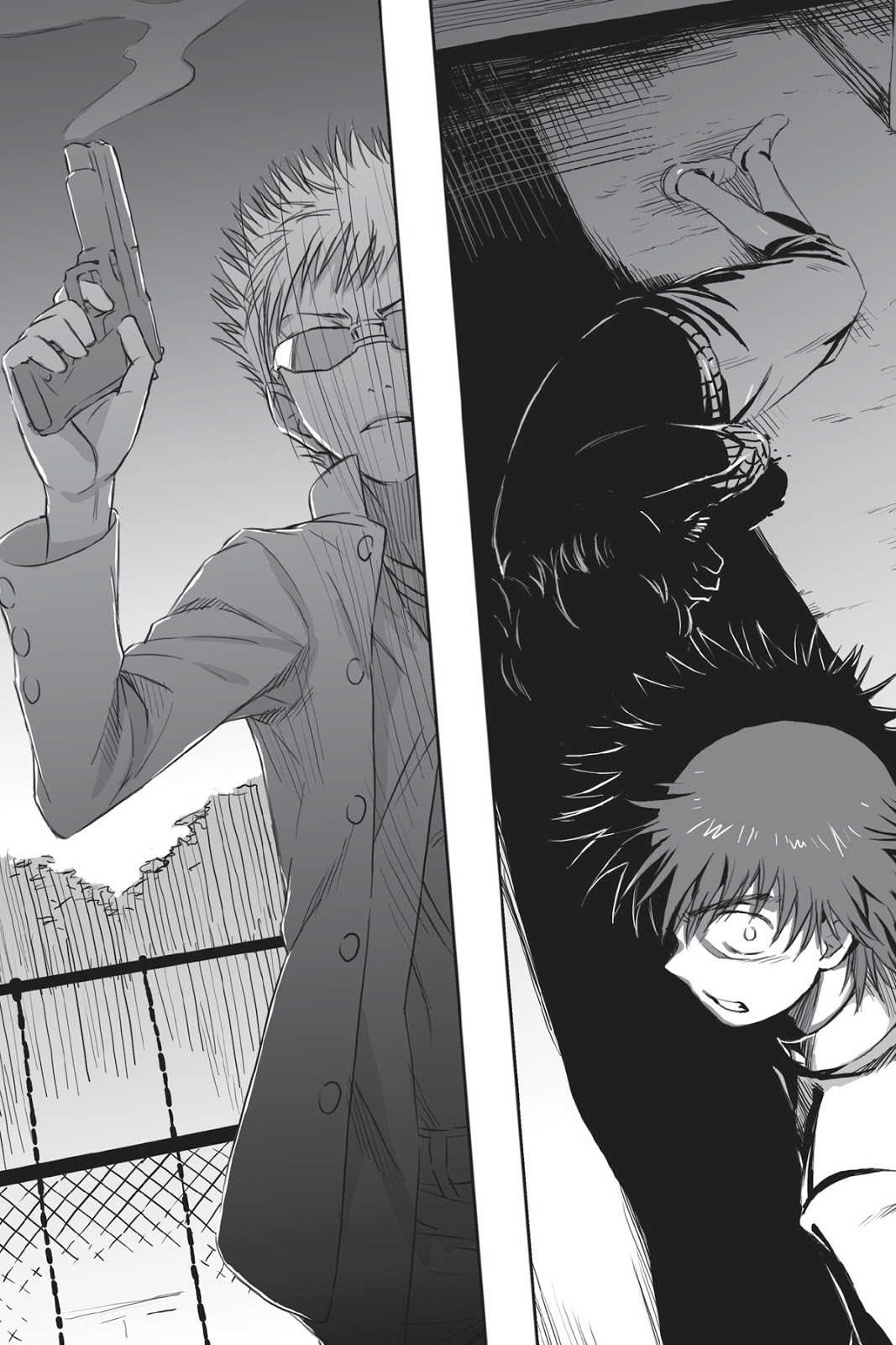 Di sana, ketika mereka membiarkan Kamijou yang kebingungan keluar dari percakapan, dia melihat sesuatu yang luar biasa. Item logam hitam bersinar di tangan kanan Tsuchimikado. Sebuah benda yang panjangnya hanya lima belas sentimeter. Dulu…