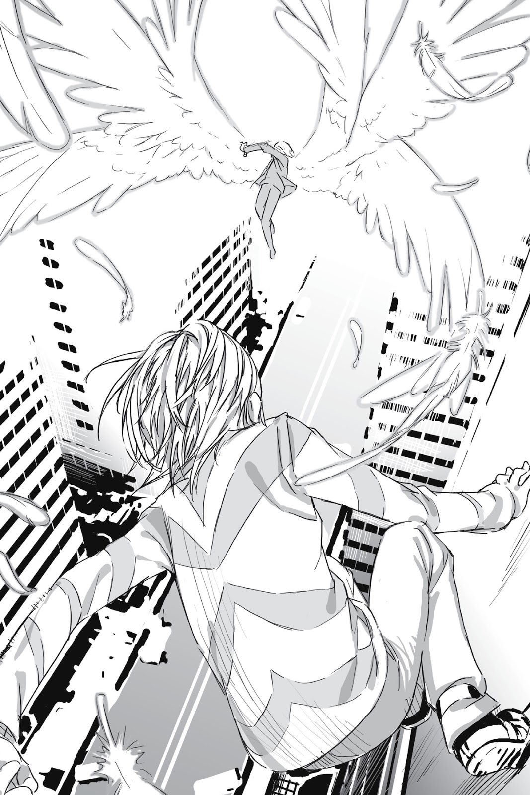 Tanpa suara, sepasang sayap di punggungnya meleleh ke udara dan menghilang. Pada saat yang sama, semua kekuatan meninggalkan tubuhnya. Dia merentangkan tangannya untuk menerimanya. Dia goyah, lalu perlahan-lahan jatuh ke arahnya.
