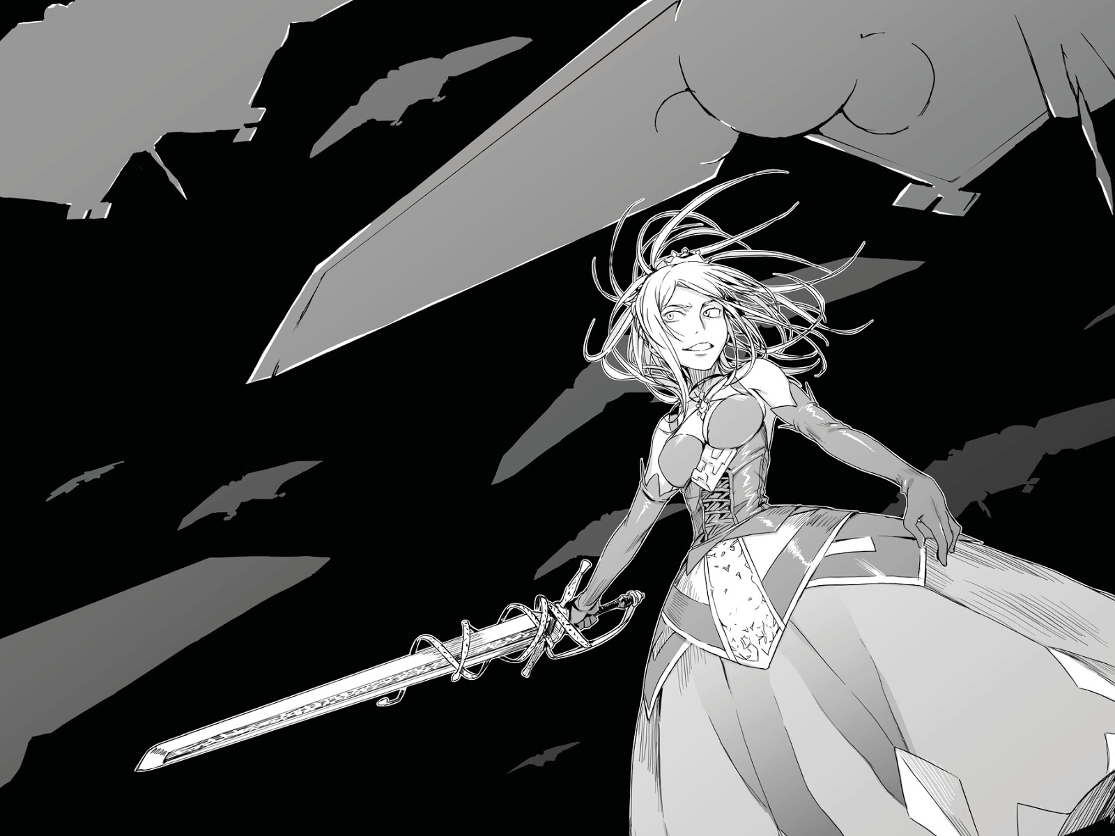 Dan kemudian tentara bayaran tertentu membawa pedang raksasanya, lebih dari tiga meter, kembali ke siap lagi.