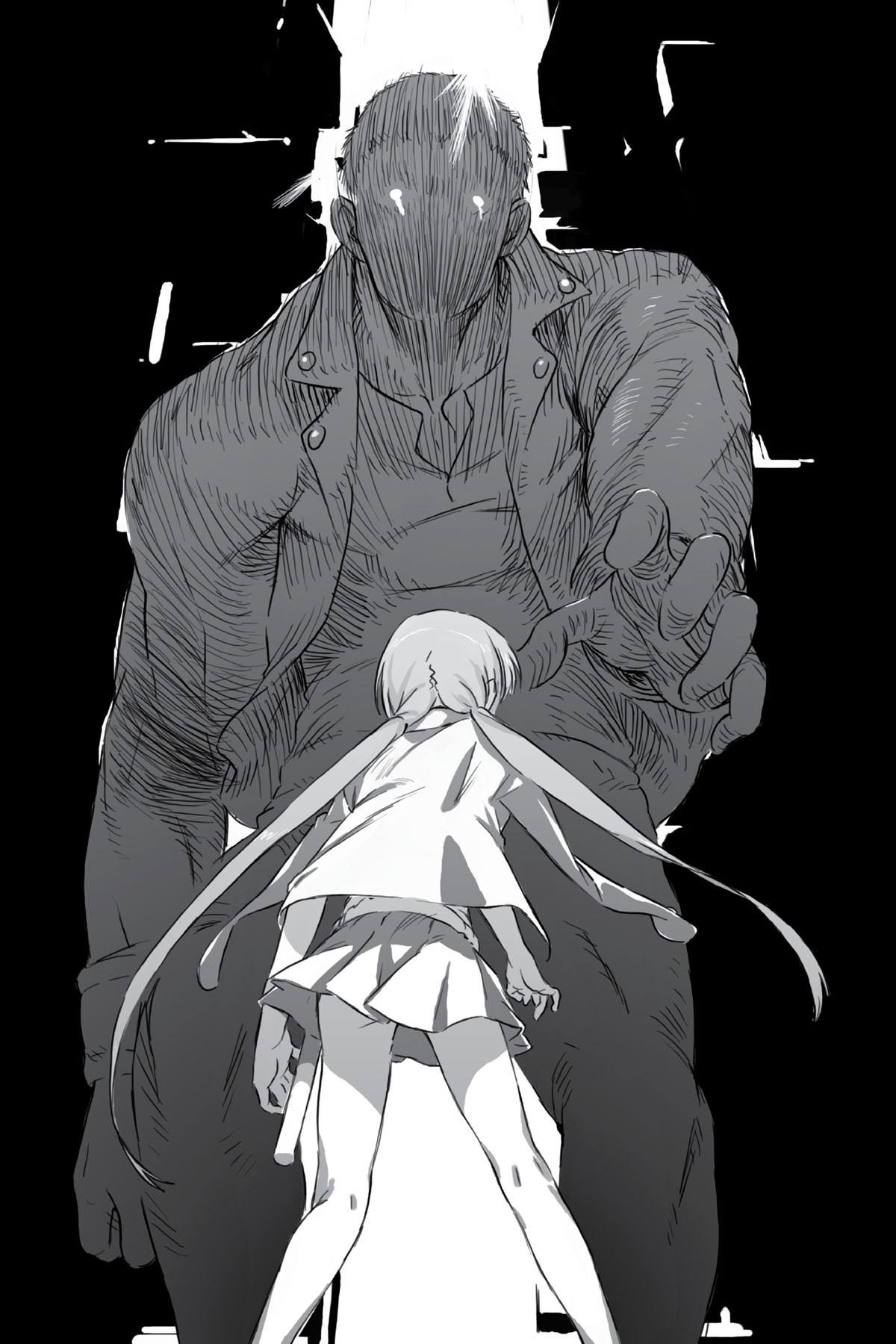 Itu menunjukkan seorang gadis kecil, seusia sekolah dasar, dan Ritoku Komaba, berdiri di sampingnya dengan tatapan tidak nyaman.