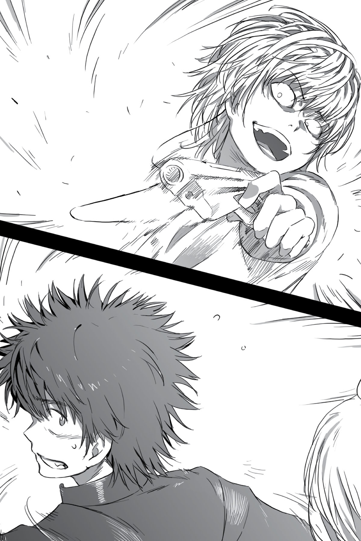 Tubuh Kamijou terjungkal ke belakang seperti jembatan, lalu jatuh ke tanah menghadap ke atas. Misuzu menjerit pelan, tapi Kamijou tidak bisa memikirkannya sekarang. Dia mengambil beberapa kotoran dari tanah dan melemparkannya ke wajah Hamazura.