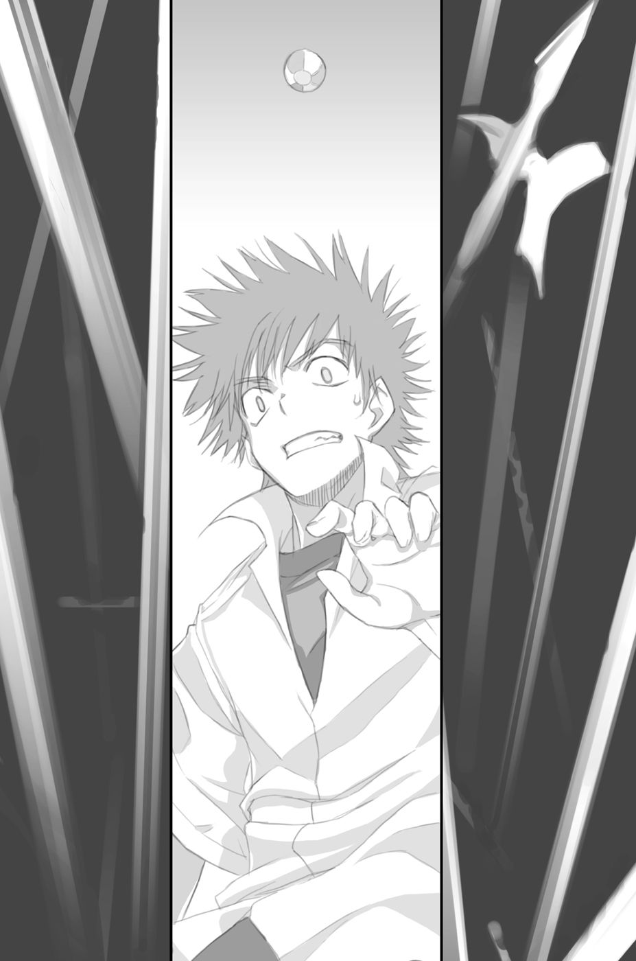 Dengan ritsleting yang tajam , satu bilah jatuh dari tanah di antara Kamijou dan Orsola. Itu hampir menjadi serangan mendadak ke tempat Kamijou dan yang lainnya, yang perhatiannya diarahkan ke atas.