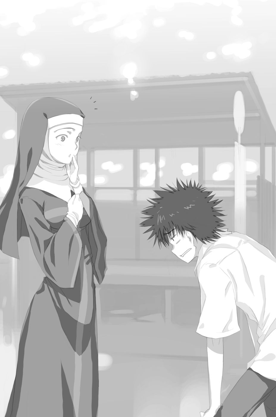 Kamijou sedikit malu pada seseorang yang belum pernah dilihatnya sebelumnya tiba-tiba menyapanya. Dia saat ini sangat marah, tetapi dia tidak bisa membiarkan dirinya melampiaskannya pada seseorang yang tidak dia kenal.